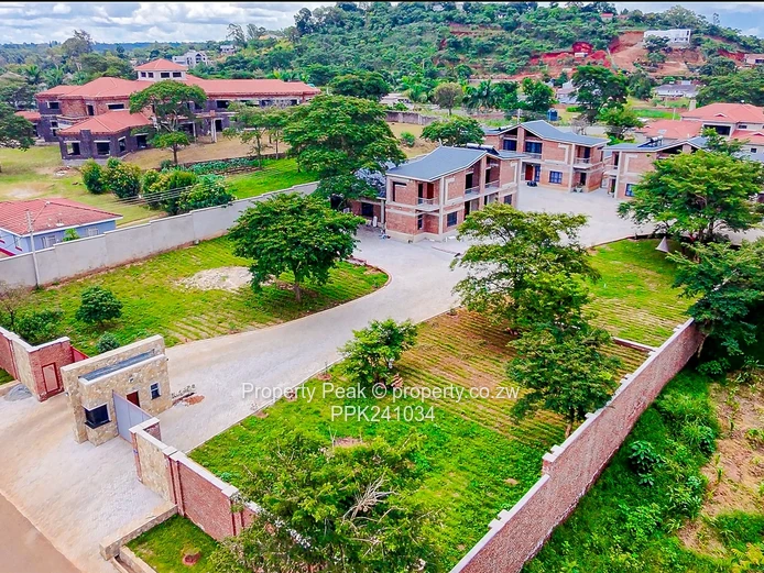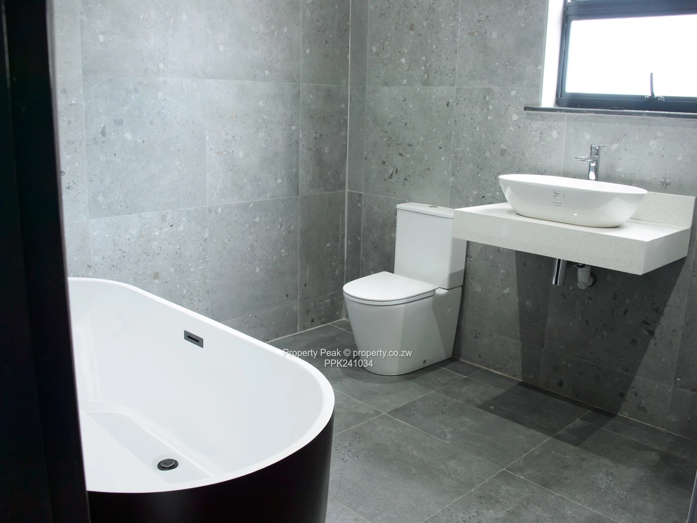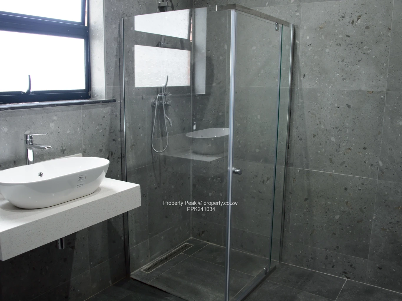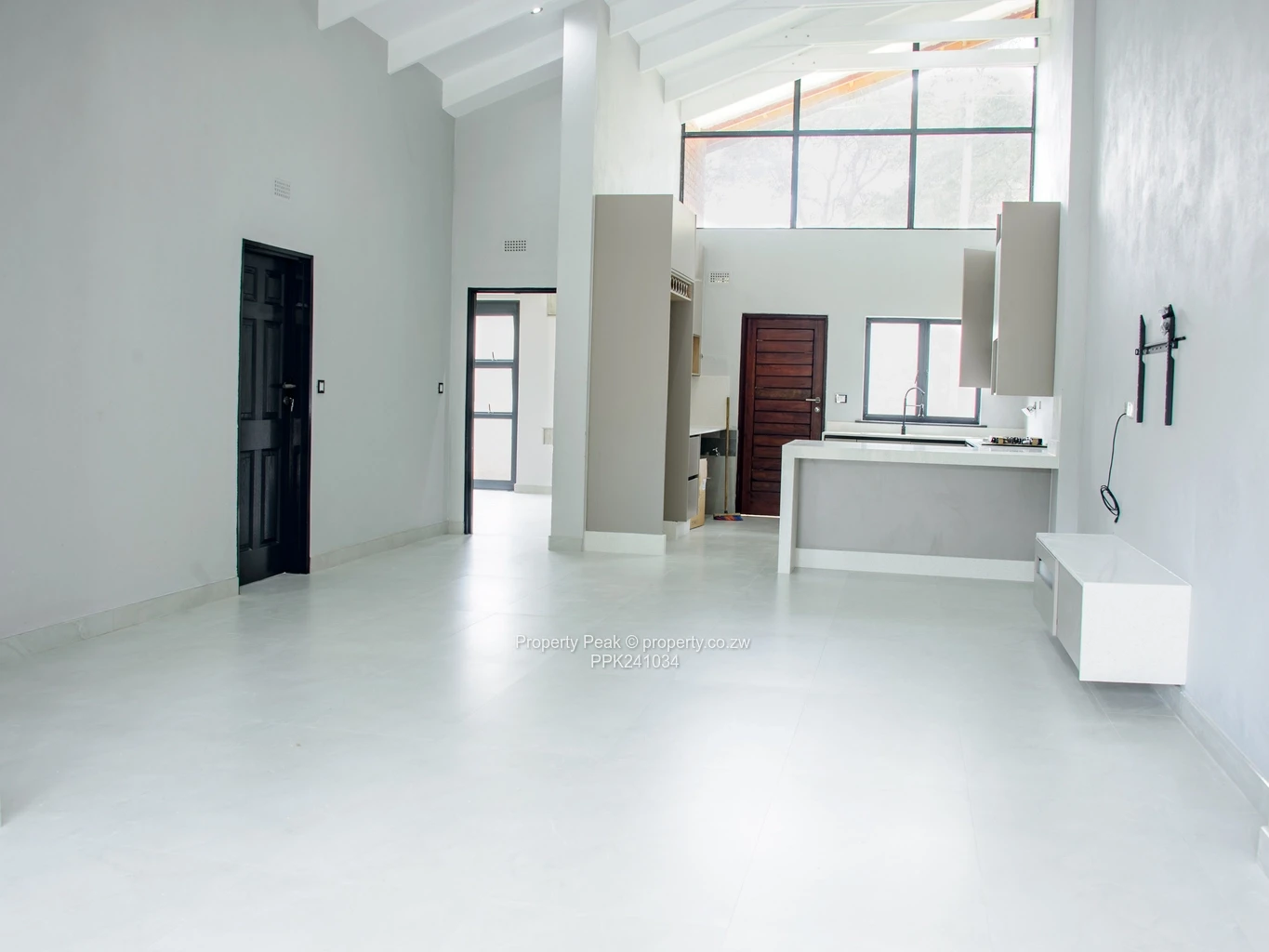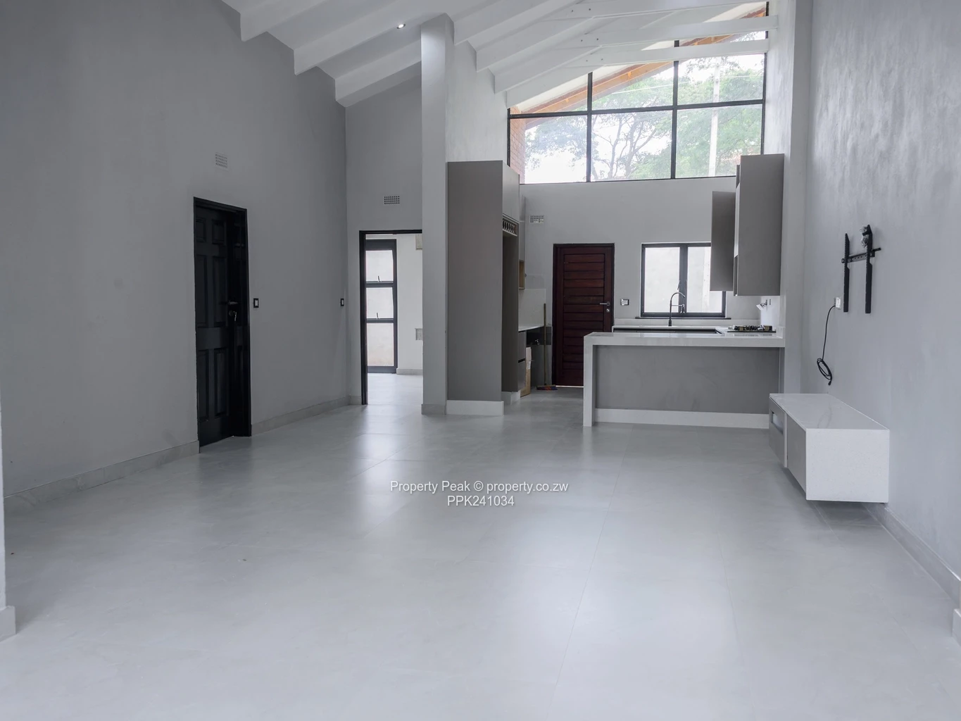 Stunning 4-bedroom, 2-bathroom modern apartment available for rent in the sought-after Gletwin Park, Harare North. Set on a generous 4,000 m² stand with a 250 m² built area, this bright unit sits within a secure, well-designed complex — aerial images show landscaped lawns, a paved central courtyard and ample parking. Interiors are contemporary and airy with high ceilings, expansive floor-to-ceiling windows and pristine white tiled floors that flood the open-plan living and dining area with natural light. The sleek, fitted kitchen features an island, ample cabinetry and stylish finishes. Bedrooms are roomy with built-in wardrobes and large windows; the bathrooms impress with modern tiling, a freestanding bath and a separate shower. Extras include secure boundary walls, covered parking and a reliable borehole ensuring uninterrupted water supply. Ideal for families or professionals seeking comfort, privacy and convenience in a peaceful Harare North neighborhood. Ready to move in — view today.