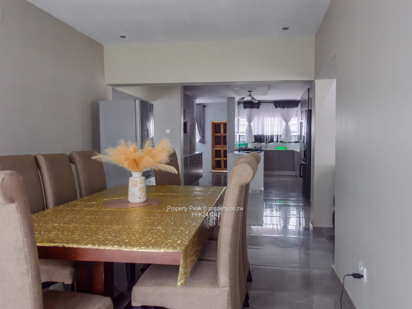 Exceptional 6-bedroom, 6-bathroom family home in sought-after Mt Pleasant Heights, Harare West, set on a generous 2,000 m² erf with a 400 m² footprint. The single-storey residence presents a modern grey exterior, neat red-tiled roof accents and a secure walled compound with ample parking. Interiors are bright and airy with open-plan living and dining spaces, neutral tiled floors, tasteful ceiling mouldings and contemporary light fittings. The living room features a generous glazing that frames lawn views; bedrooms are spacious, well-staged with large windows and built-in storage. The fitted kitchen boasts a central island/breakfast bar, abundant cabinetry and a practical layout for family living. Six full bathrooms are finished in clean white fittings and natural light. Outside, manicured lawns and a private garden area create play space and entertainment potential. A reliable borehole ensures consistent water supply — a valuable asset in Harare. Ideal for multigenerational living or investment, this home combines modern comforts, generous outdoor space and convenient access to local amenities in Mt Pleasant Heights. Arrange a viewing to appreciate the quality and flow in person.